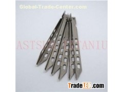 MATERIALTitanium alloy SIZEDia10mmWEIGHT10gLENGTH160mm FEATURElighter than the crevice stakeGreater holding ability in soft groundReflective cord attached.ADVANTAGEIncredible strength for weightVarious shapes for different staking applicationsResist bendingCorrosive-resistant100% EST GuarateeAPPLICATIonSWidely used in the outdoor,Tent stakes,etc. For more sizes,custom lengths,large quantities and info., please forward your requirements to sales@bjdsti.com